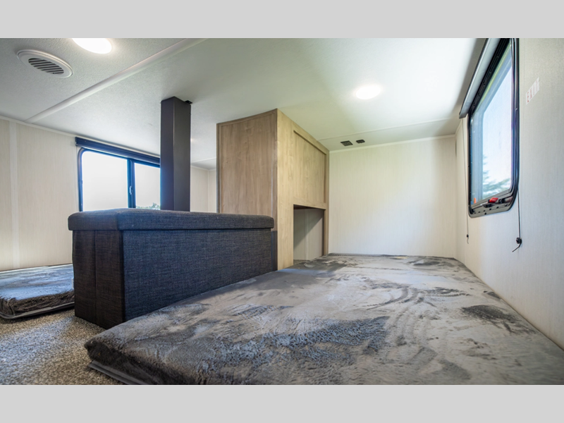 You will always find a comfortable place to relax with friends and family, cook with the full kitchen amenities, and clean up daily in the bathroom. There are also cozy sleeping spaces, plenty of storage options, and durable construction materials so you can enjoy your trailer for years to come!