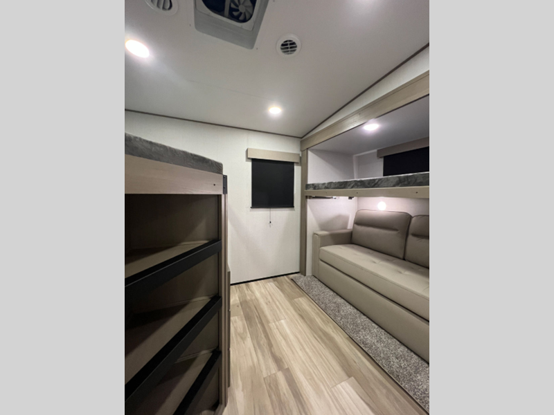 Sleeps 7 Slides 4 Length 36 ft 11 in Ext Width 8 ft Ext Height 12 ft 3 in Hitch Weight 2450 lbs GVWR 13995 lbs Dry Weight 11700 lbs Fresh Water Capacity 74 gals Grey Water Capacity 87 gals Black Water Capacity 87 gals Tire Size ST235/80R16RLE Furnace BTU 35000 btu Number Of Bunks 2 Available Beds Queen Refrigerator Type 12V Refrigerator Size 16 cu ft Cooktop Burners 3 Number of Awnings 2 LP Tank Capacity 30 lbs Water Heater Type On Demand AC BTU 15000 btu TV Info LR 40" TV Awning Info 13' & 10'6" One-Touch Electric LED Axle Count 2 Number of LP Tanks 2 Shower Type Radius Electrical Service 50 amp Similar Floorplans