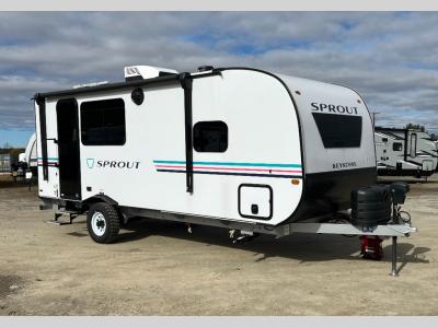 The Sprout travel trailers by Keystone are premium single-axle units that are sure to make an impression at the campground. Each one is built with .040 smooth front medal, one piece heated and enclosed underbelly, power tongue jack. There are also tinted safety glass windows, quick drop stabilizer jacks, and an exterior shower with hot and cold water. Inside, you will enjoy blackout night shades and a 78" interior height, along with an ultra-bright LED light strip and solid surface countertops in the kitchen. The 13,500 BTU A/C and 20,000 BTU furnace will keep you comfortable, and the Suburban tankless water heater is a convenience you won't want to camp without!