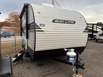 Each Sun Lite LTD travel trailer by Sunset Park RV is made with flexibility in mind. These lightweight models weigh under 3,000 lbs. for easy towing, and they offer best-in class interior storage for all your belongings. They are built with a one-piece PVC roof membrane and a durable rock guard that will help protect against rock and debris on the way to the campground. There is also an electric awning outside, along with a 100-watt solar kit, an outside shower, and more convenient features. You'll find a power roof vent in the bath, stylish window treatments, ball bearing drawer guides, and LED lights to name a few interior comforts.