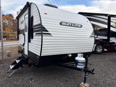 Each Sun Lite LTD travel trailer by Sunset Park RV is made with flexibility in mind. These lightweight models weigh under 3,000 lbs. for easy towing, and they offer best-in class interior storage for all your belongings. They are built with a one-piece PVC roof membrane and a durable rock guard that will help protect against rock and debris on the way to the campground. There is also an electric awning outside, along with a 100-watt solar kit, an outside shower, and more convenient features. You'll find a power roof vent in the bath, stylish window treatments, ball bearing drawer guides, and LED lights to name a few interior comforts.